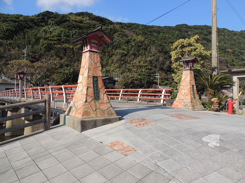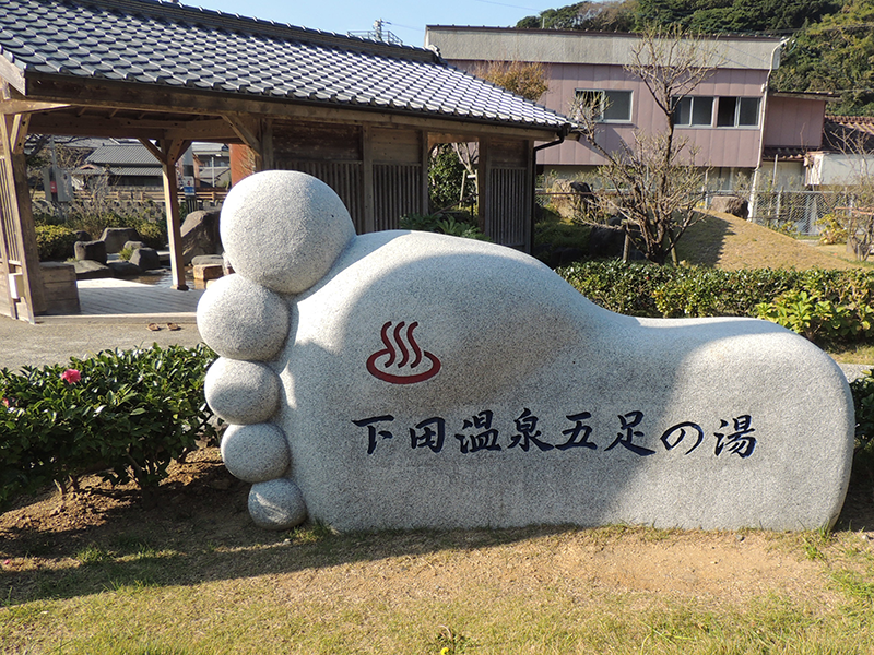 下田温泉の中心を流れる下津深江川にかかる天草陶石を使った「湯の本橋」を渡ると、「温泉神社」、温泉町ならではのお湯のお手水が迎えてくれます。その先には疲れを癒す「足湯」があり、もっと散策を楽しむなら、与謝野寛(鉄幹)、木下奎太郎(太田正雄)、北原白秋、平野万里、吉井勇らが、”パアテルさん”を探して旅した「五足の靴」の足跡をたどる「文学散歩道」もお勧めです。